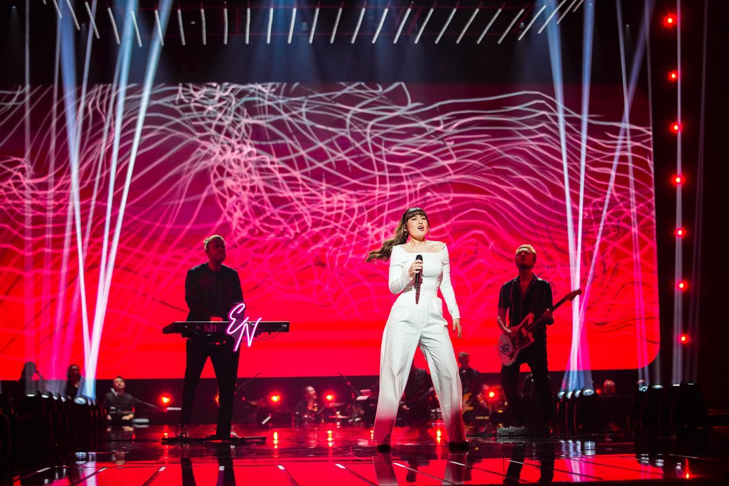 The big injustice for me was some songs not even making the super final, or the Gold Final as it is known in Norway. That was the case with Raylee and her epic Flashdance-inspired ode to the 1980s, Hero. The Gold Final is the top 4 out of 12 finalists, and while you could understand Tix, Keiino and Blåsemafian in the Gold Final, that cheap Jorn would be the fourth option was insane. Raylee had a long, tight ponytail and was dressed in white for the final. While it was fine and certainly made a stronger contrast against the dark set, I preferred the semi final version with the 80s perm and blue outfit.
