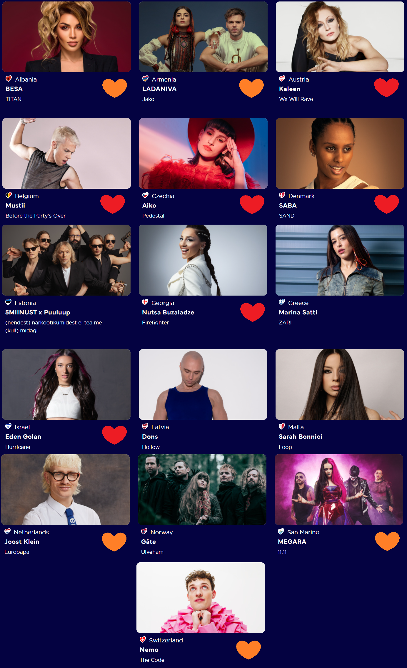 Here I’ve simply nominated my favourites, with France the only hot song. Sweden, as hosts, have already drawn to start the grand final first. The rest will be decided after the semi finals.